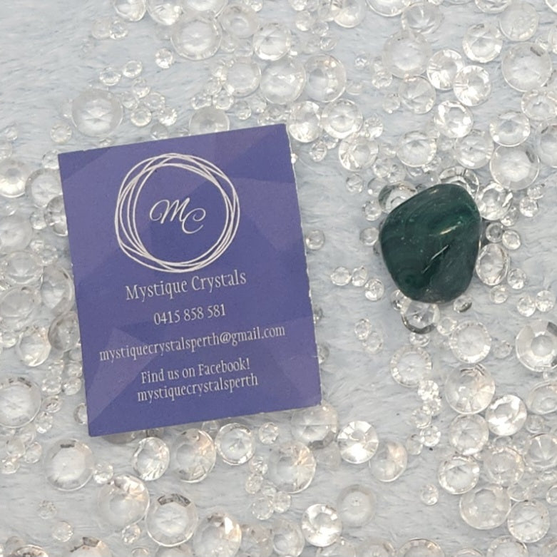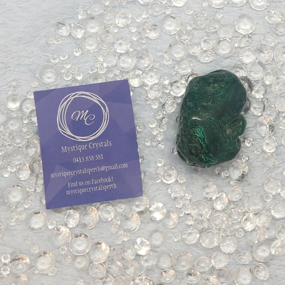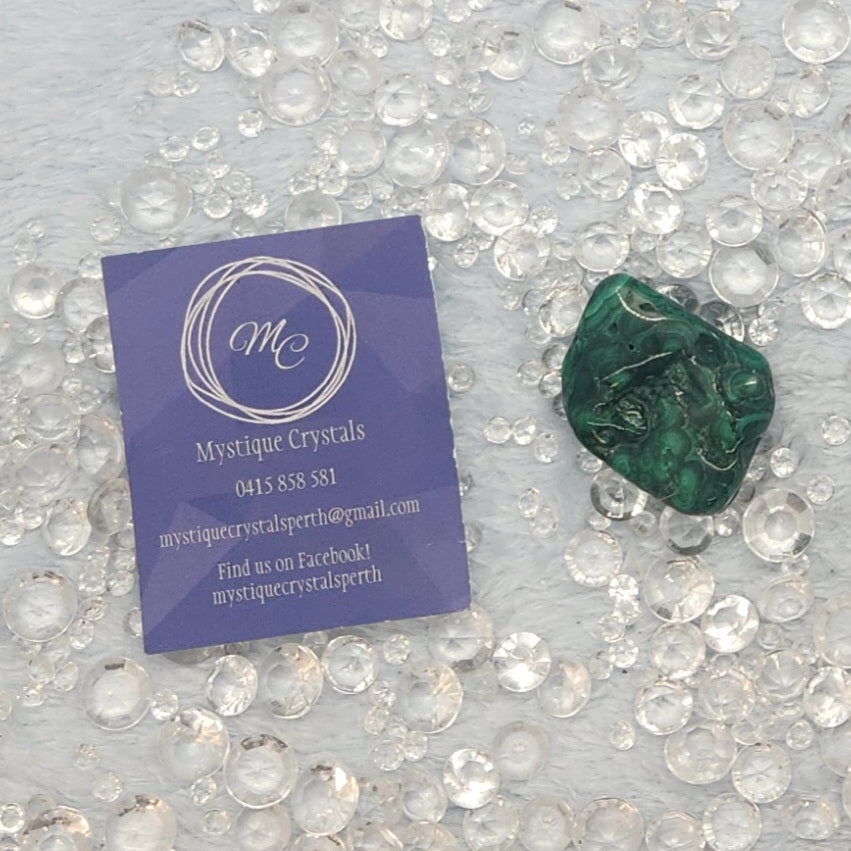 Malachite is a loyal & hard-working protector & bolsterer of your strength & willpower. It helps you access your innate power & protects you from negativity as you take action in the world. It can help open your heart to all types of love.