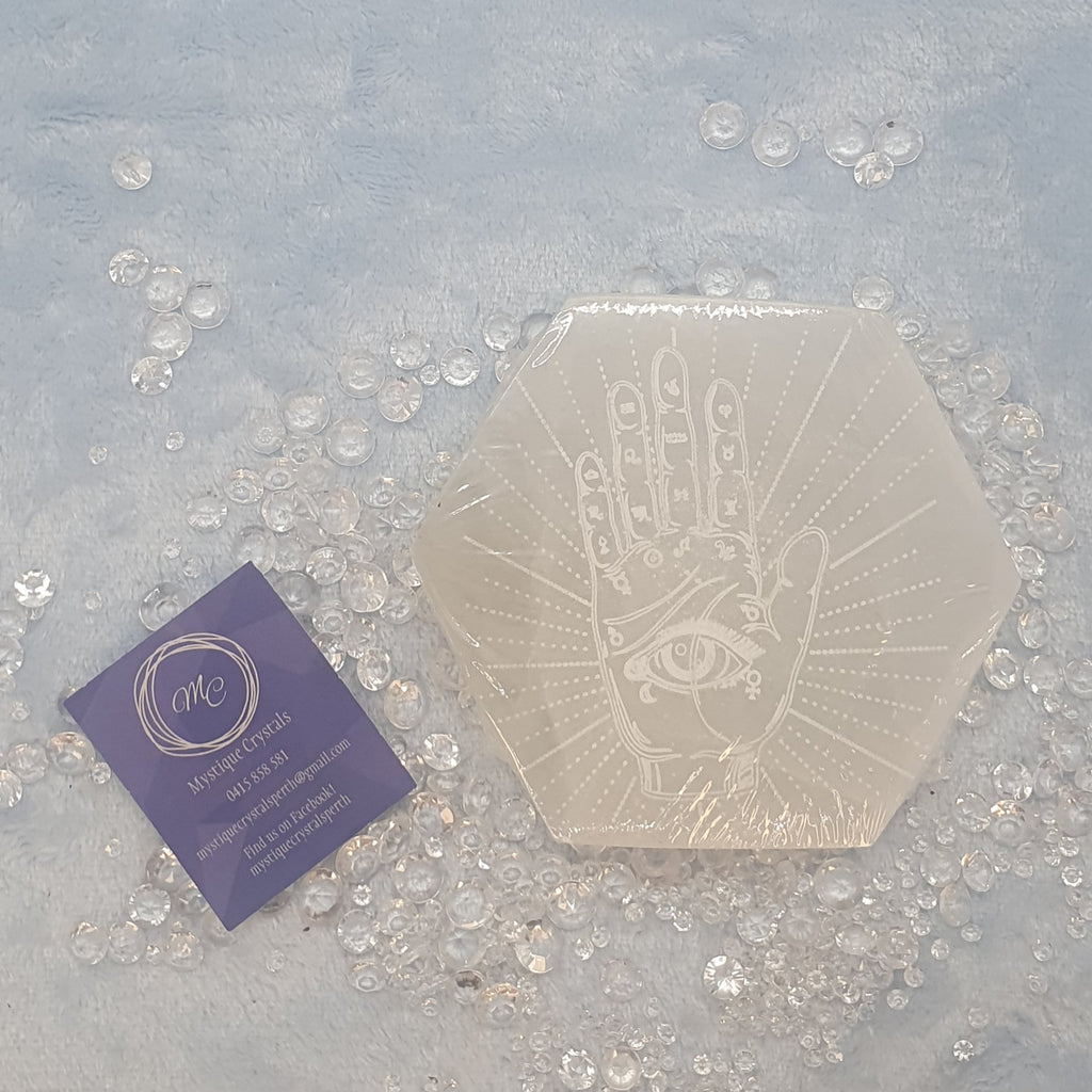 Selenite works with the crown & third eye chakras. It can both cleanse & charge other stones, as well as being able to cleanse your aura. It can help relieve stress & anxiety, provide mental clarity & emotional healing & fill you with positive intentions.