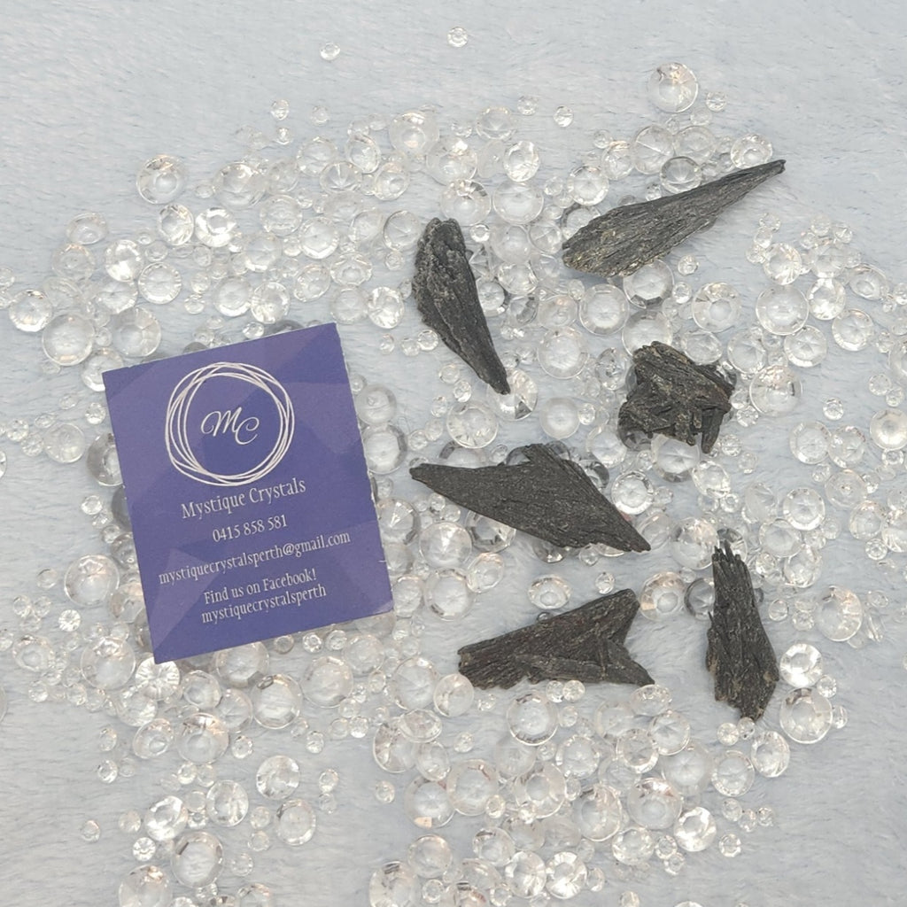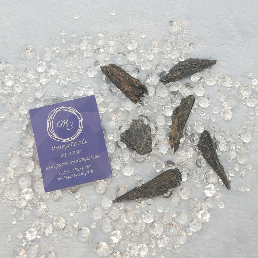 Kyanite has a high energy that works to restore flow to your chakras. It stimulates intuition as well as alleviating stress, anger & anxiety. It also promotes justice, truth, diplomacy & fairness. Kyanite doesn't hold negative energy, so it doesn't need to be cleansed.