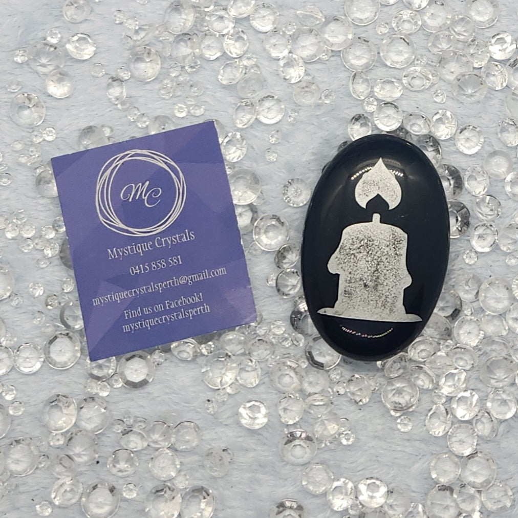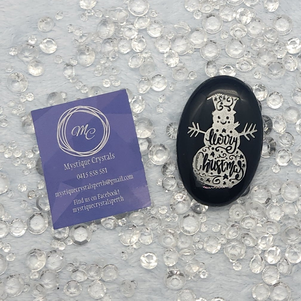 Snowman Palm Stone (Black Obsidian) - $15.00 AUD
